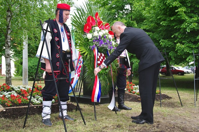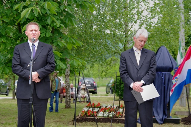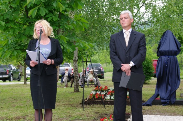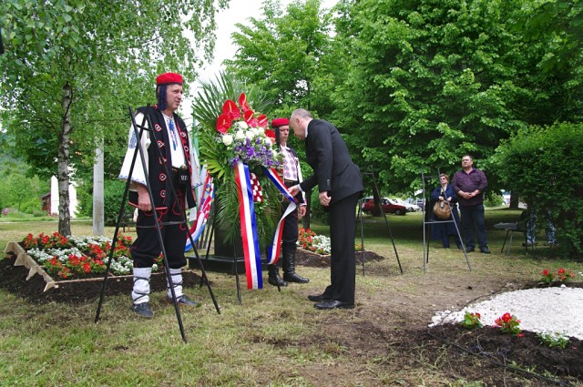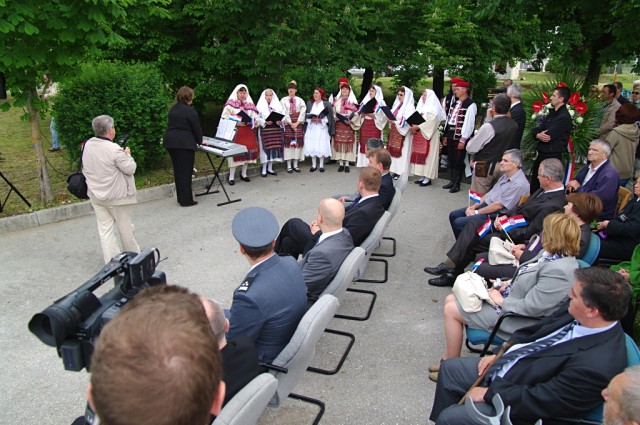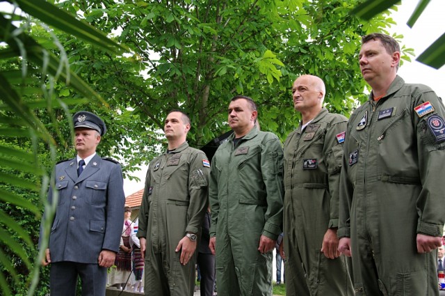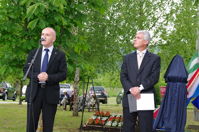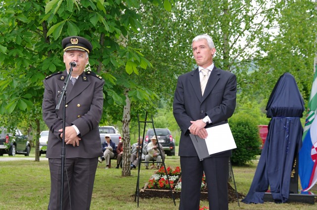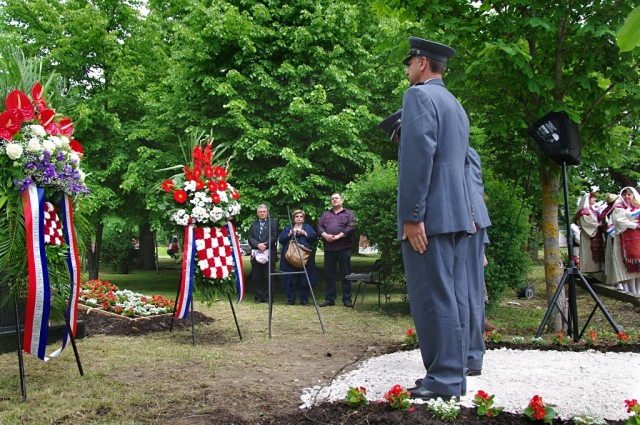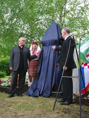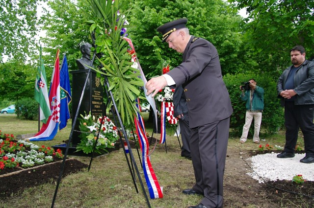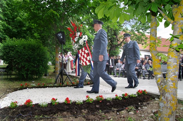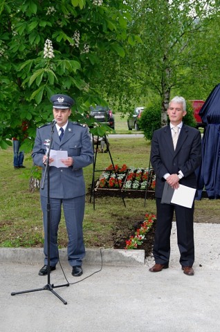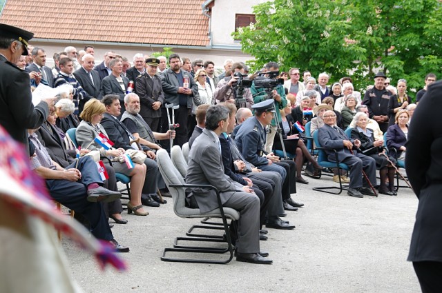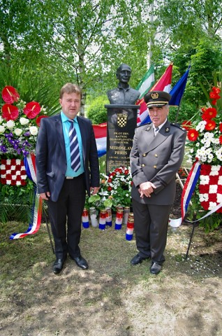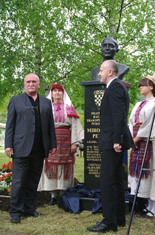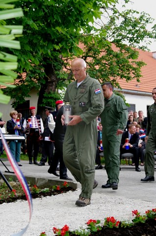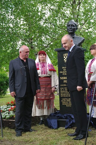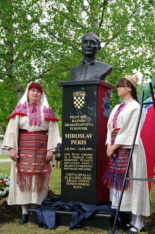 Svečano otkrivanje spomen-biste poginulom branitelju Domovinskog rata, pilotu HRZ-a, pukovniku Miroslavu Perisu održano 26. 05. 2012. u Sošicama.
